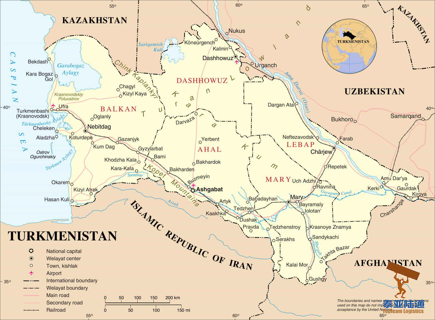 Consider TOPTEAM as your professional international freight shipping partner. We are known for fair freight shipping rates and a simple, easy shipping process, with no hassles, no hidden charges and no surprises. No matter how much freight you need to move or where you need to ship your goods to. TOPTEAM is your reliable freight shipping solution for Turkmenistan.